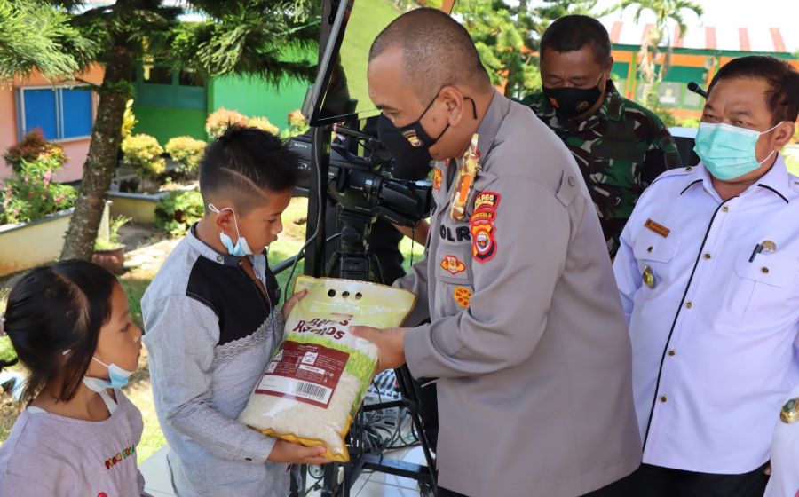 Kapolres RL Pantau Serbuan Vaksinasi di SMAN 3 Curup Utara Sambil Berbagi Sembako