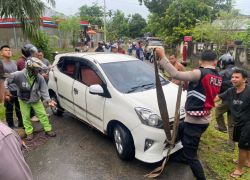 Anggota SAR Ditsamapta Polda Bengkulu Evakuasi Mobil Warga yang Terseret Banjir