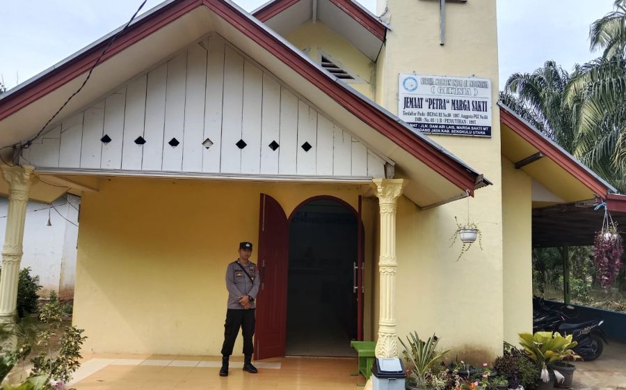 Polsek Padang Jaya Berikan Pengamanan Jemaat yang Beribadah