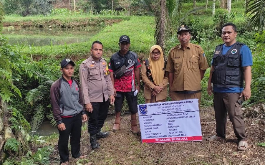 Monitoring Penggunaan DD, Bhabinkamtibmas Polsek Padang Jaya Hadiri Penetapan Titik Nol Pembangunan Desa Marga Sakti