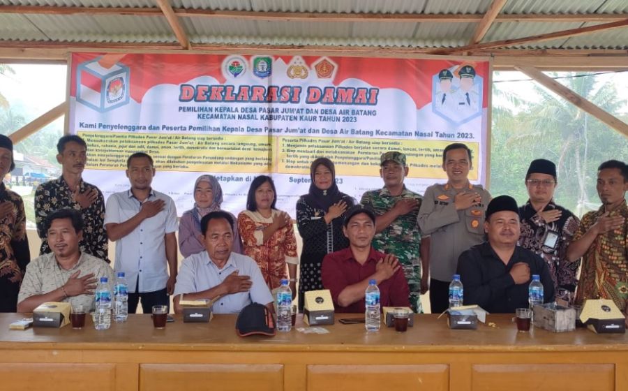 Kapolsek Nasal, Hadiri Deklarasi Damai Pemilihan Kades Serentak Tahun 2023 di Desa Pasar Baru