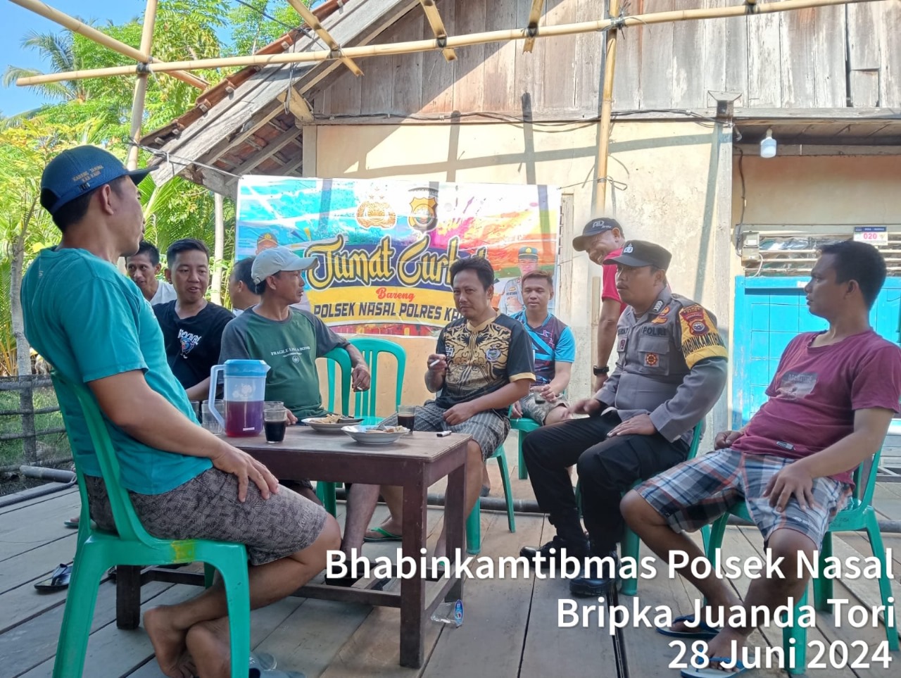 Kaur - Bhabinkamtibmas Polsek Nasal Polres Kaur Polda Bengkulu, Bripka Juanda Toni bersama Tiga, Toma, Toda dan masyarakat melaksanakan Jumat Curhat bertempat di Desa Merpas Kecamatan Nasal Kabupaten Kaur, Jumat, (28/06/2024), Pukul 08.30 Wib.