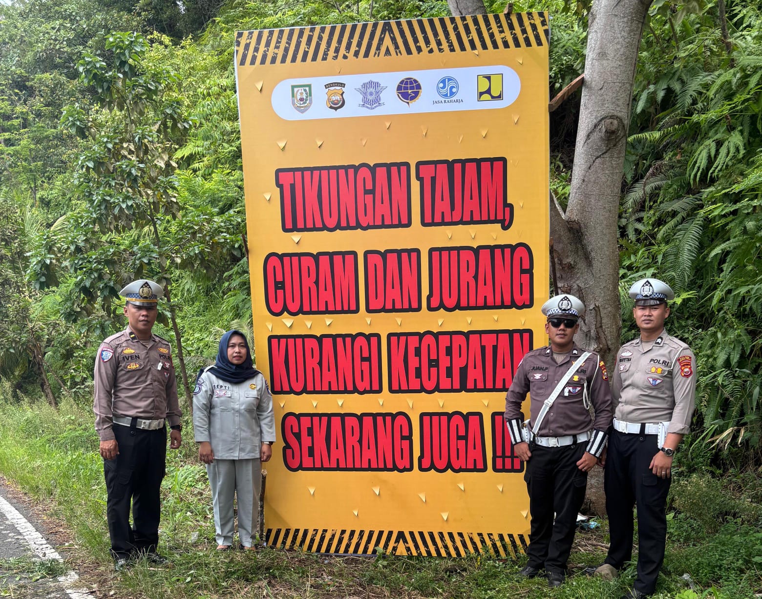 Jasa Raharja dan Satlantas Polres Bengkulu Tengah Lakukan Pemasangan Himbauan Keselamatan di Jalur Lintas Bengkulu-Kepahiang