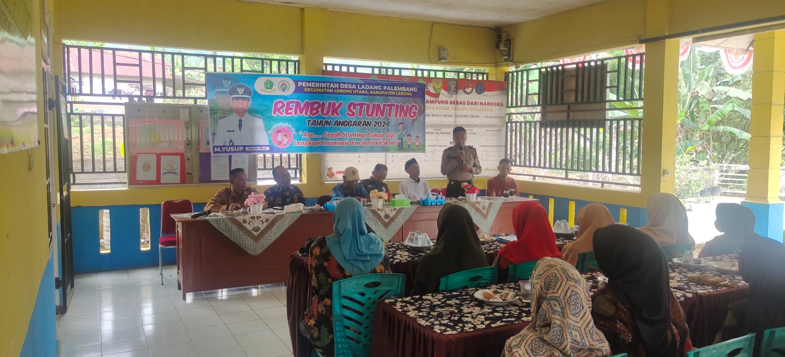Lebong - Dalam rangka mendukung pencegahan stunting dan penanganan stunting, Kanit Binmas Polsek Lebong Utara Polres Lebong Polda Bengkulu, Aiptu Wahyu RK, dan Bhabinkamtibmas Brigpol Boga Aditya, menghadiri rembug stunting TA 2024, di Desa Ladang Palembang, Kecamatan Lebong Utara Kabupaten Lebong, Selasa (3/9/2024).