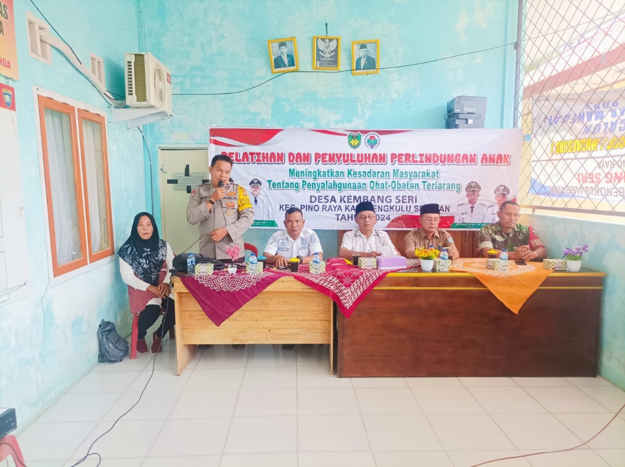 Bengkulu Selatan – Dalam Rangka Peningkatan Kemampuan Individu warga Desa Serang Bulan Bhabin Polsek Pino Raya , Polres Bengkulu Selatan , Polda Bengkulu menghadiri Pelatihan dan Penyuluhan Perlindungan Anak terkait penyalah Gunaan Obat Obatan di Desa Kembang Seri Kecamatan Pino Raya Kabupaten Bengkulu Selatan, untuk meningkatkan kemampuan Warga sembari jalin silaturahmi, Rabu (14/08/24).