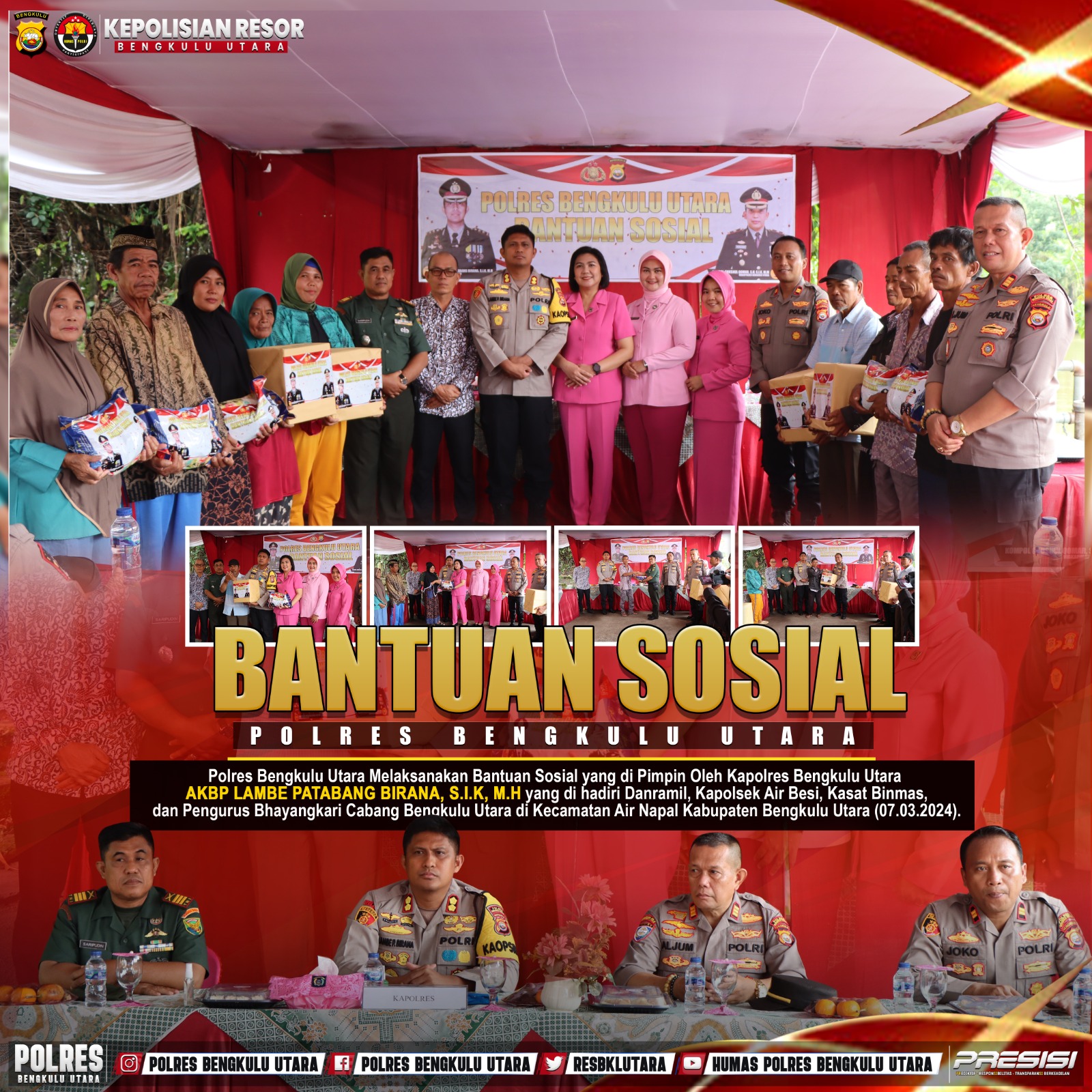 Selain silaturahmi, kunjungan Kapolres yang didampingi Ketua Bhyangkari Cabang Bengkulu PUtara dr. Elisa H. Kalembang, Sp.S, beserta PJU Polres Bengkulu Utara dan Bhayangkari Cabang Bengkulu Utara membagikan Sebanyak 30 Paket Sembako dan Beras serta Kartu BPJS diharapkan setidaknya bisa mengurangi beban ekonomi Kepada Nelayan Tradisional di Kec. Air Napal Kab. Bengkulu Utara.