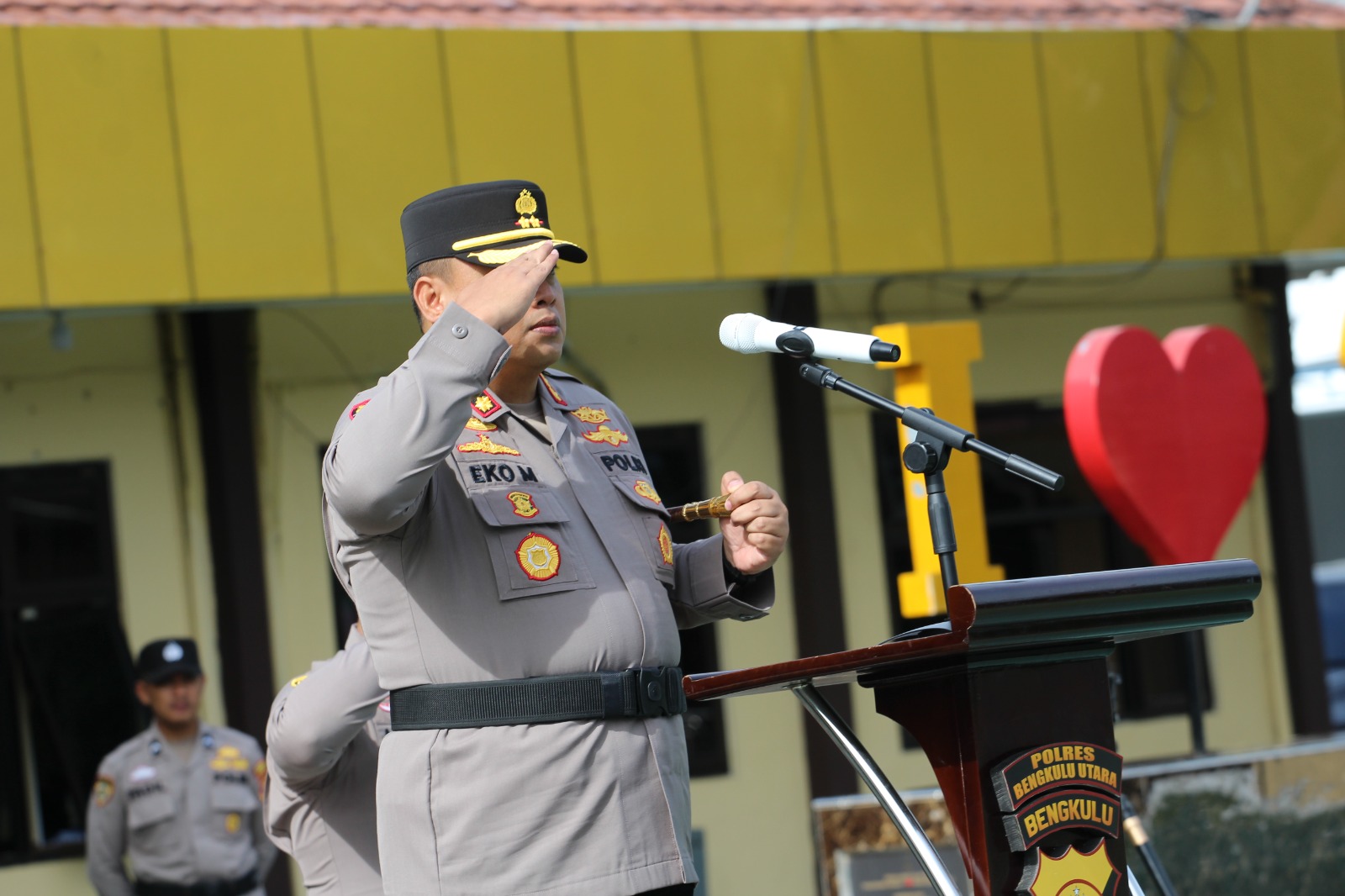 Kegiatan dipimpin langsung oleh Kapolres Bengkulu Utara AKBP Eko Munarianto, S.I.K dan diikuti oleh para pejabat utama, perwira, serta personel Polres Bengkulu Utara.
