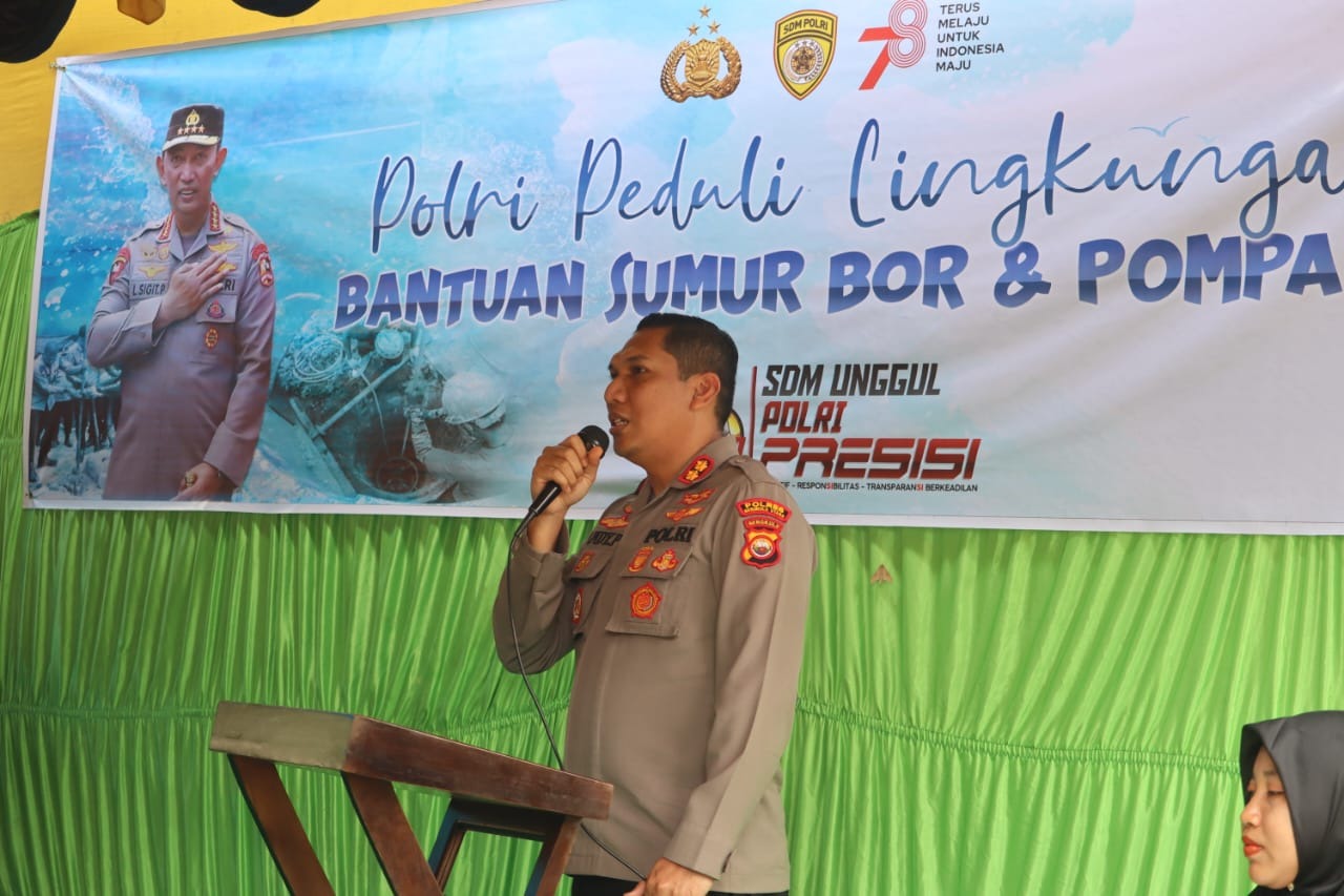 Bengkulu Utara - Dalam rangka Program Kapolri Qick Wins dan Polri peduli lingkungan, Kapolres Bengkulu Utara Polda Bengkulu AKBP Andy Pramudya Wardana melaksankan peresmian bantuan Sumur Bor dan Pompa Air di desa Tanjung Sari Kecamatan Ulok Kupai Kabupaten Bengkulu Utara, Sabtu (30/09/2023).