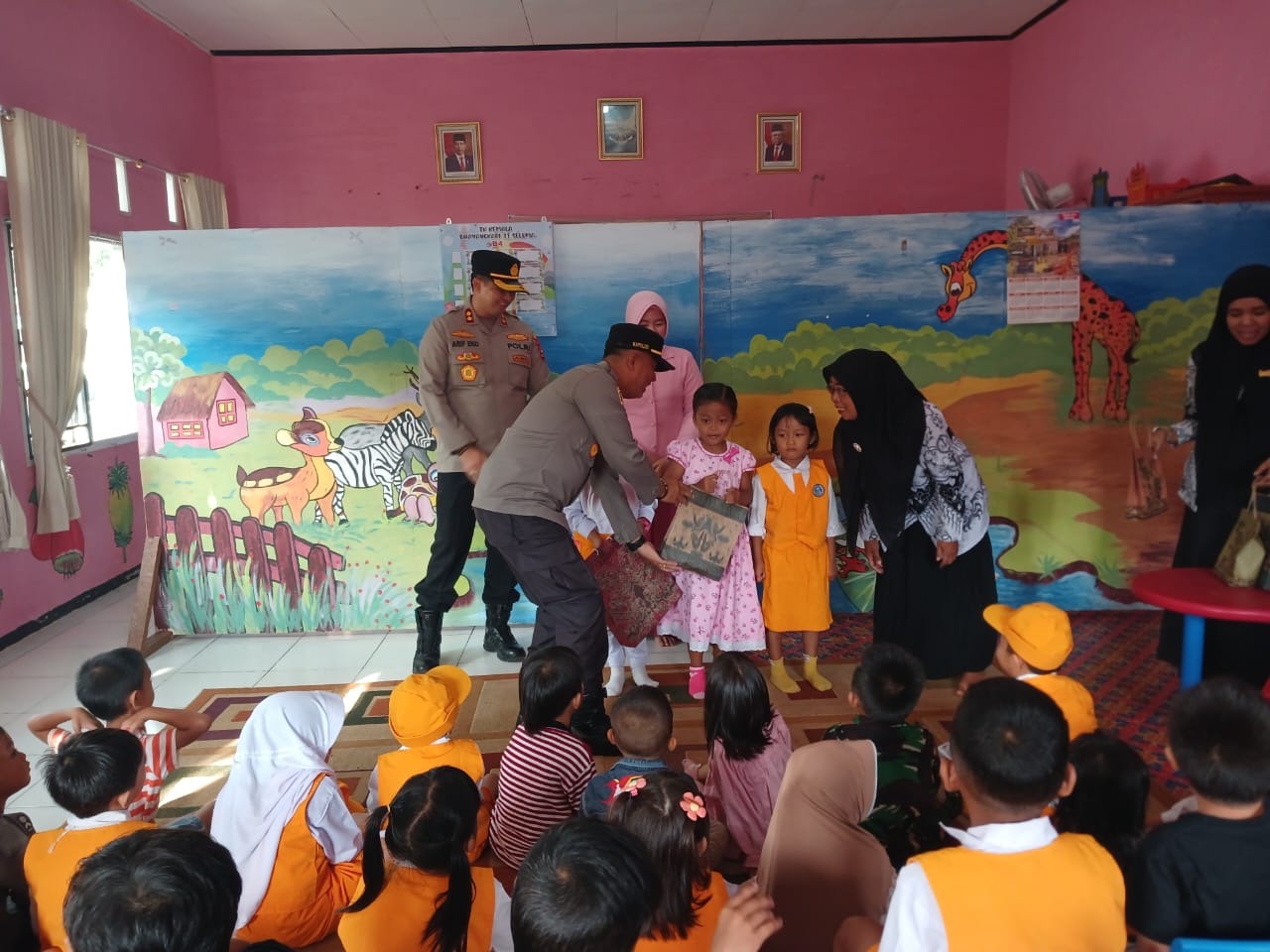 Seluma - Senin (21/08/2023) Kapolres Seluma Polda Bengkulu AKBP Arif Eko Prastyo, S.I.K., M.H., beserta Ibu Ketua Cabang Bhayaangkari Seluma melaksanakan penyerahan pembagian hadiah kepada anak-anak TK yang menang dalam perlombaan dalam rangka HUT RI ke 78 di TK Kemala Bhayangkari 31 Seluma.