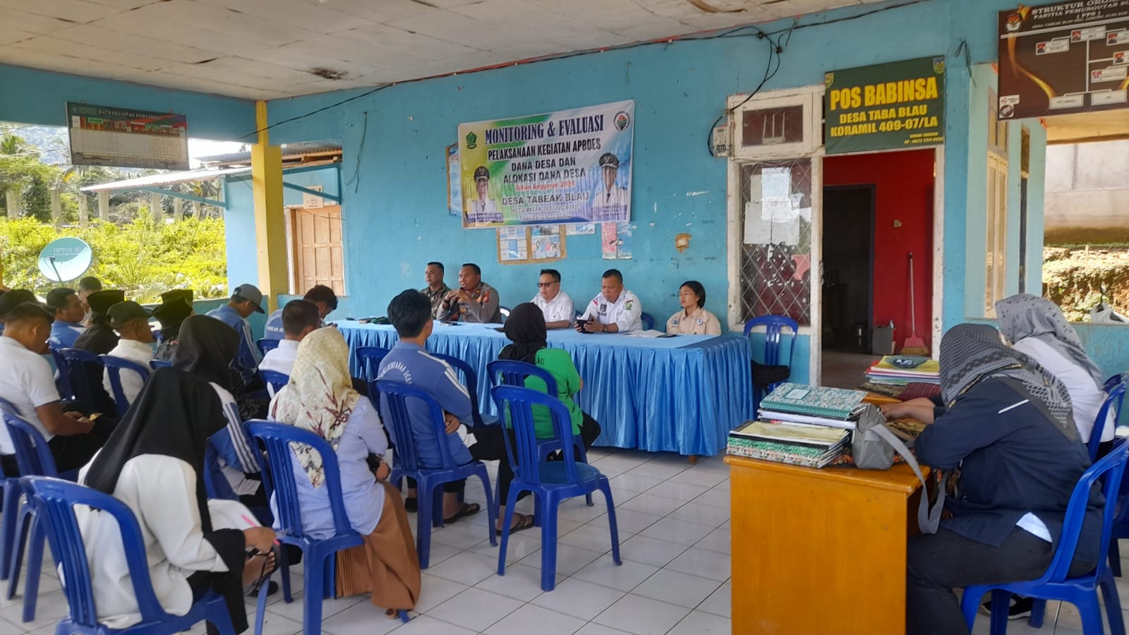 Lebong - Kapolsek Lebong Atas Polres Lebong Polda Bengkulu, Iptu Nur Huda, didampingi Bhabinkamtibmas Polsek Lebong Atas Bripka Raden Syahbana, menghadiri Monev di Desa Tabeak Blau Kecamatan Lebong Atas, Kabupaten Lebong, Rabu (8/5/2024).