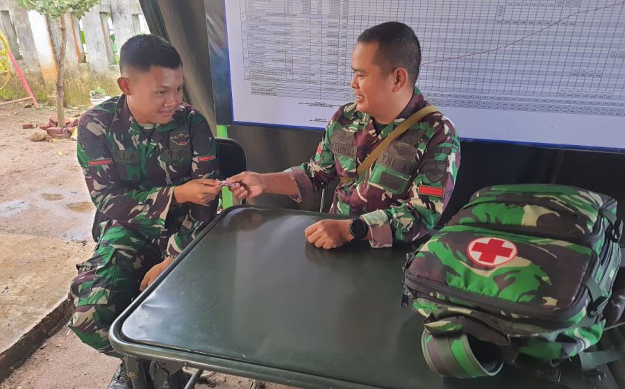 Di lapangan, suasana kerja tampak penuh kebersamaan. Personel Satgas TNI bersama anggota Polsek setempat dan warga saling membantu tanpa mengenal lelah. Ada yang mengisi karung dengan pasir dan batu koral, ada pula yang mengangkutnya menggunakan motor kebun menuju lokasi rabat beton.