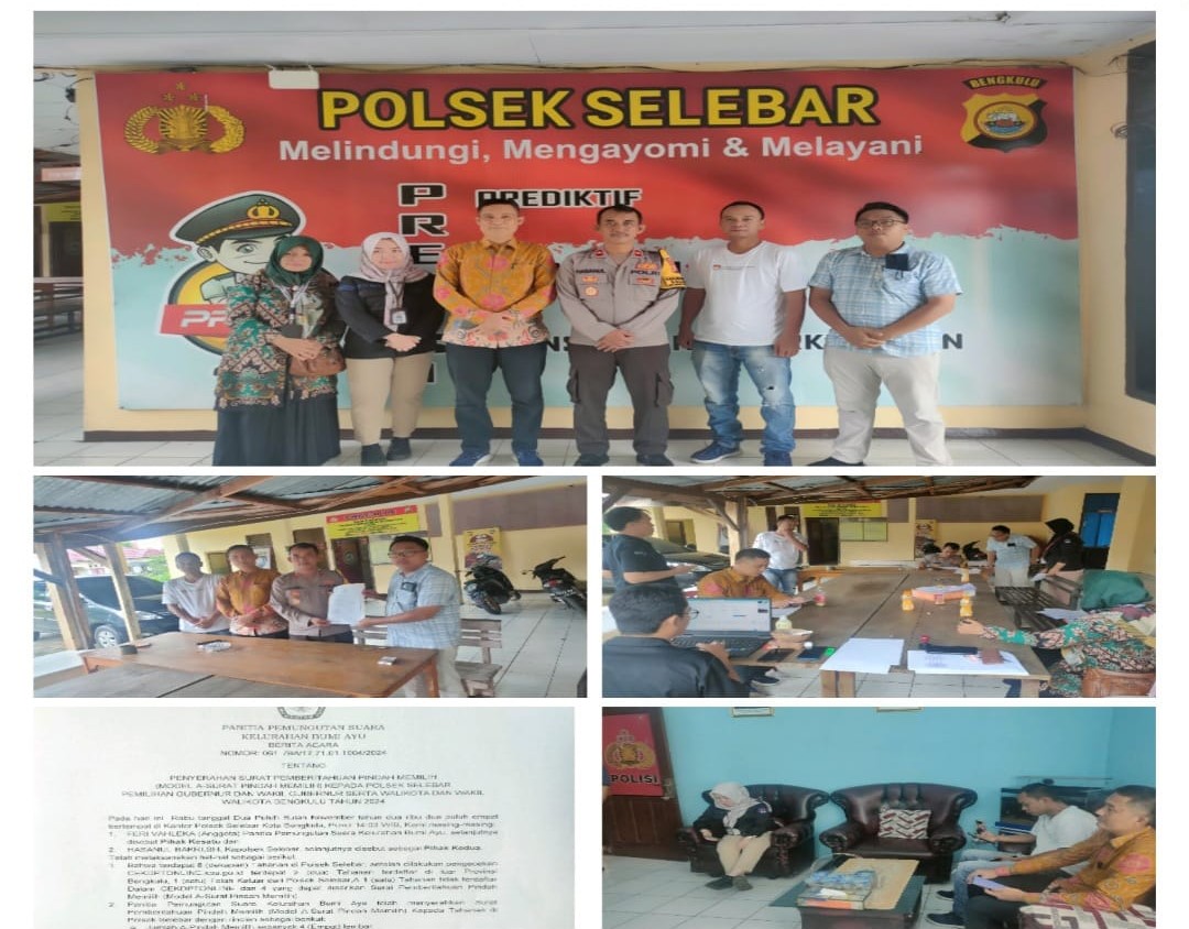 Bengkulu – Pada Rabu, (20 November 2025), sekitar pukul 13.30 WIB,  Polsek Selebar terima kunjungan Komisioner KPU Kota Bengkulu guna untuk memfasilitasi Pemilih Pindahan (DPTb) dalam rangka Pemilihan Gubernur/Wakil Gubernur dan Walikota/Wakil Walikota Bengkulu 2024.