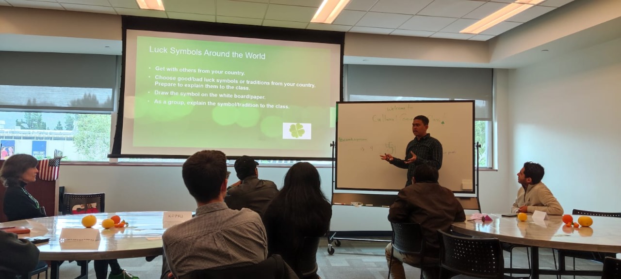 Tidak hanya budaya Amerika, kelas sharing budaya ini juga memperkenalkan budaya seluruh negara peserta. Sesi meeting yang berlangsung pada Selasa, 12 Maret 2024 bertema “Good and Bad Signs in Your Culture” (Simbol ataupun tanda baik dan buruk yang dikenal dalam budaya dan tradisi masing-masing). Sebagaimana biasanya, beberapa peserta diminta untuk maju ke depan dan memaparkannya dalam bentuk presentasi menggunakan media yang tersedia.
