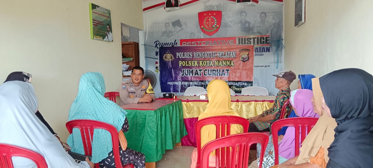Bengkulu Selatan - Polsek Kota Manna Polres Bengkulu Selatan Polda Bengkulu, melakukan Jumat Curhat, di Desa Pagar Dewa Kecamatan Kota Manna Kabupaten Bengkulu Selatan, Jumat (13/10/23).