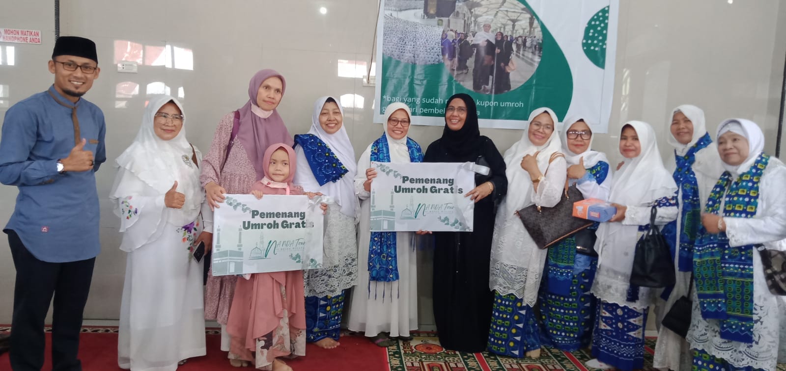 "2 orang kita berangkat umroh secara gratis dan juga 14 Door prize kita bagikan untuk jemaah. Kedua orang yang beruntung untuk berangkat untuk nanti kita berangkat lewat Nanda Tour and Travel ," ujar Erni.