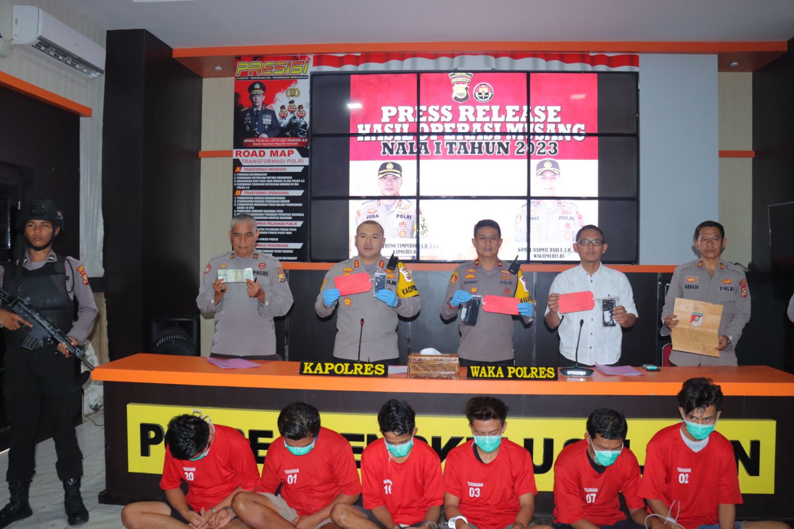 Kapolres Bengkulu Selatan AKBP Juda T Tampublon, memimpin kegiatan Press Release dengan didampingi Wakapolres Kompol Rahmat Hadi, Kasubag Jerman AKP Anang , Kasi Humas AKP Sarmadi, serta Kasat Reskrim Iptu Susilo, serta dengan dihadiri awak media baik media cetak, TV maupun media online di Kabupaten Bengkulu Selatan.
