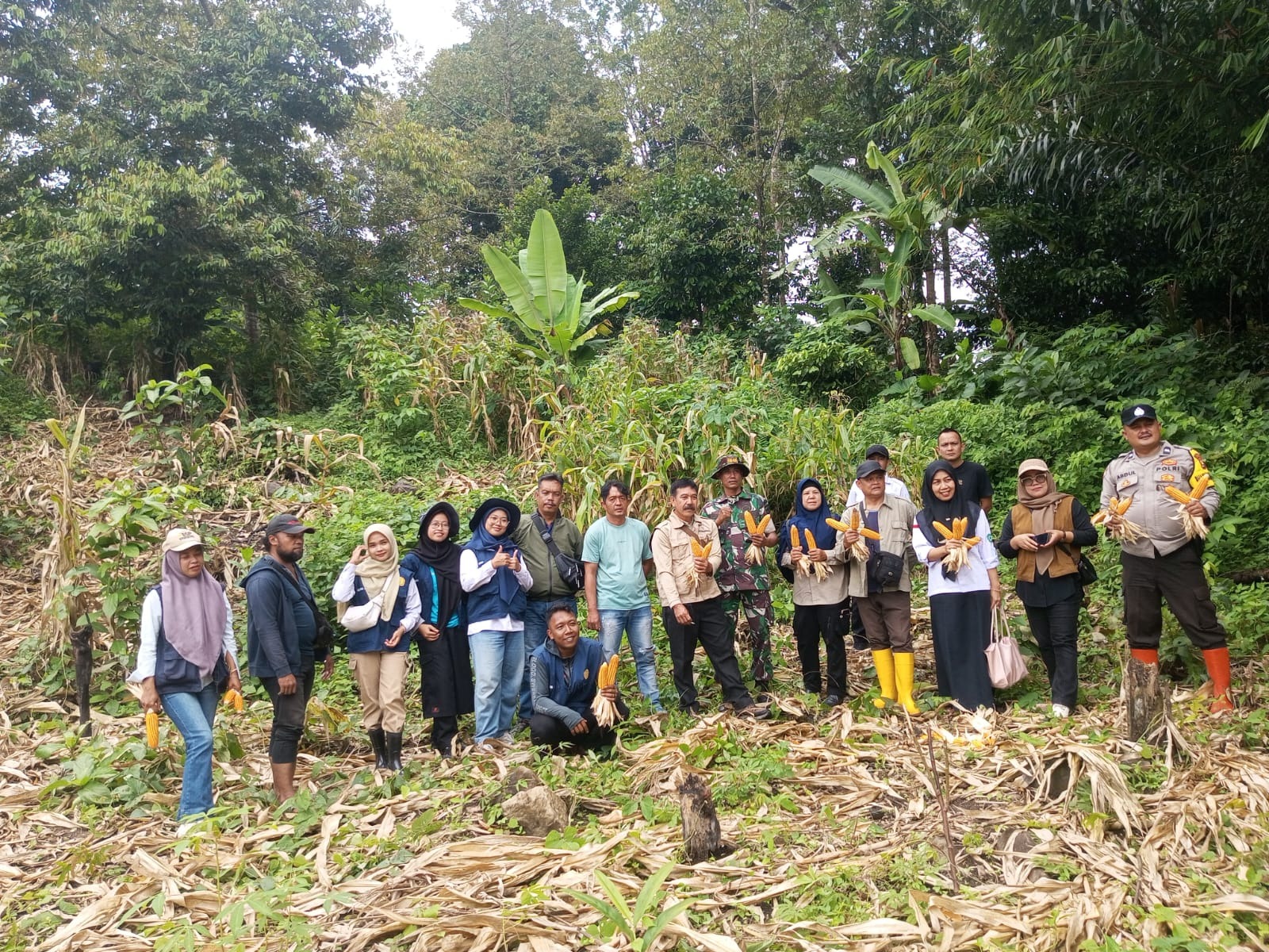 Menurut keterangan, tanaman jagung tersebut ditanam menggunakan bibit sebanyak 20 kilogram dengan target panen awal sekitar 3 ton. Meskipun hasil panen belum sepenuhnya mencapai target, kegiatan ini tetap dinilai berhasil dan memberikan dampak positif terhadap penguatan ketahanan pangan serta peningkatan ekonomi masyarakat desa.