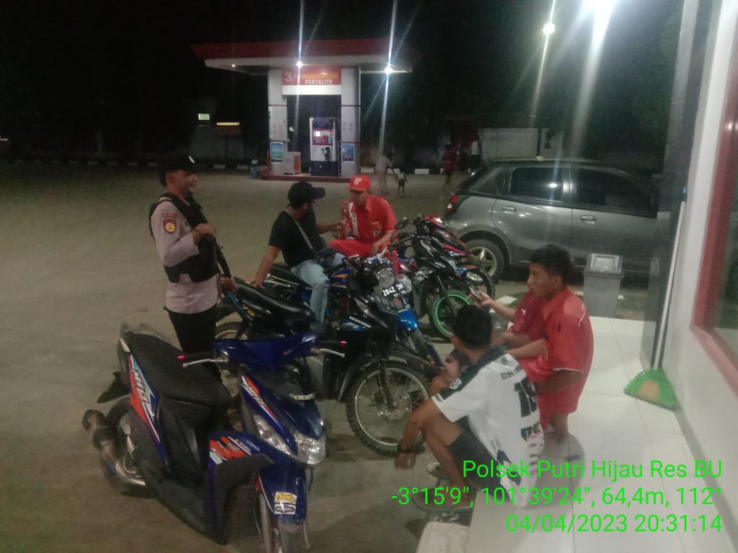 Kali ini Lokasi Patroli malam meliputi objek vital, tongkrongan anggota masyarakat, pertokoan, dan kawasan perumahan di wilayah hukum Polsek Putri Hijau Selasa, (04/04.2023).