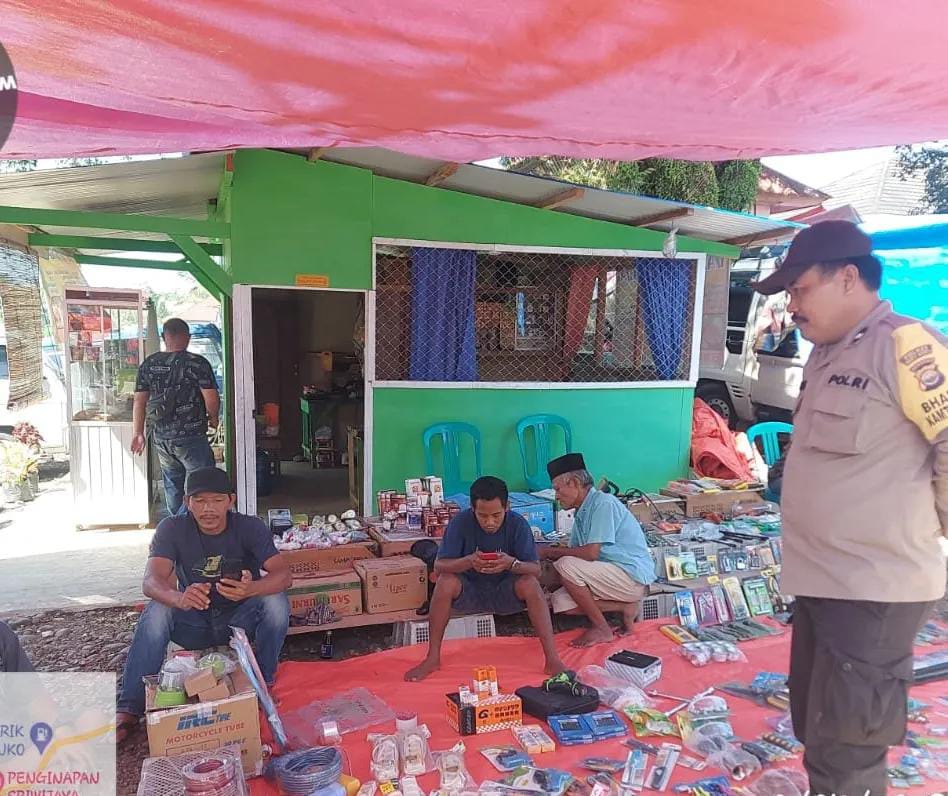 Mukomuko - Pak Bhabin Polsek Penarik Raya Polres Mukomuko melaksanakan kegiatan Patroli di Pasar Beringin Semar Desa Mekar Mulya menghimbau pedagang guna mengantisipasi terjadinya kriminalitas dan tindak pidana lainnya, Sabtu, (20/05/2023).