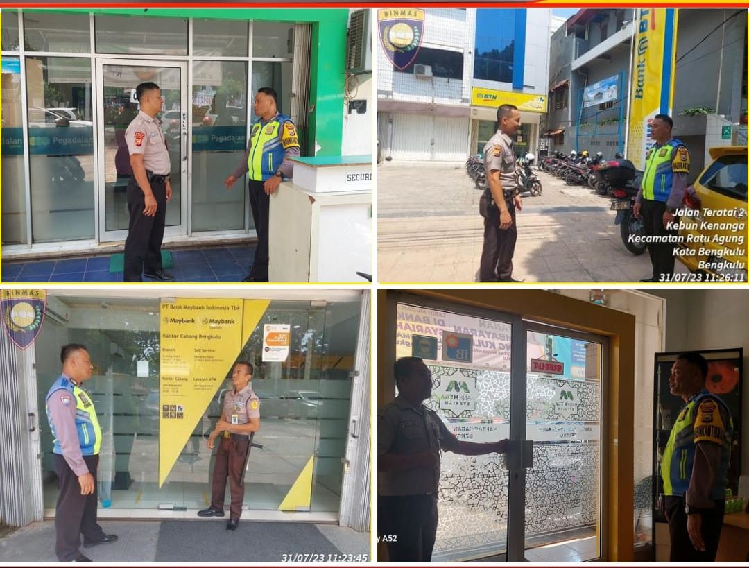 Seperti yang dilakukan oleh Bhabinkamtibmas Polsek Ratu Samban Polresta Bengkulu Polda Bengkulu, melaksanakan kegiatan sambang ke objek Vital, Bank Mega Syriah, May Bank, Bank BTN, dan Pegadaian Syriah Sabtu, (31/07/2023) siang.
