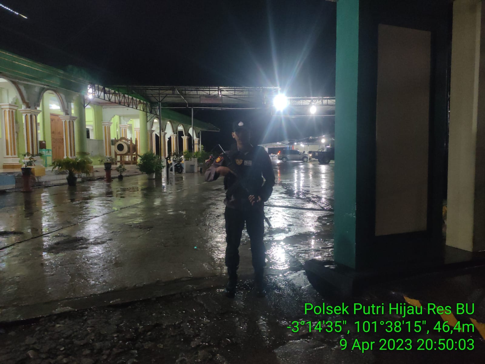 Bengkulu Utara - Polsek Putri Hijau Polres Bengkulu Utara Polda Bengkulu, melaksanakan pengamanan dan patroli di Masjid maupun di Mushola yang ada di wilayah hukumnya pada saat umat muslim menjalankan ibadah Salat Tarawih. Minggu (09/04/2023) malam.
