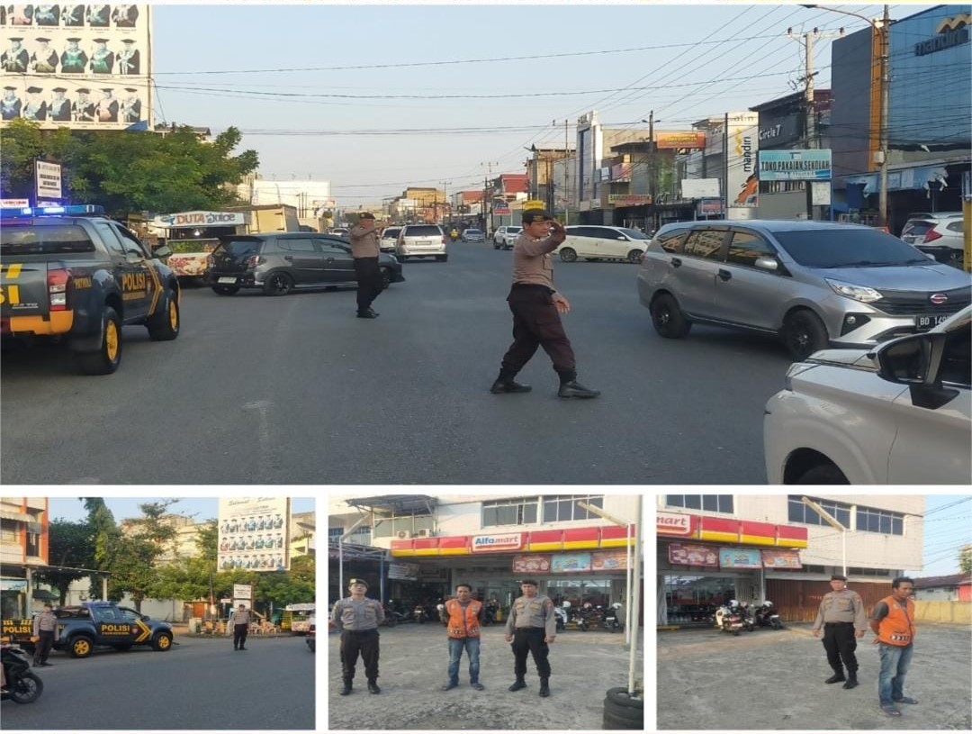 Personel Sat Samapta Polresta Bengkulu Atur Lalin di Pasar Panorama
