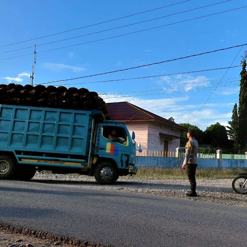 "Pak Bhabin kami selalu memberikan himbauan dan pesan Kamtibmas kepada masyarakat dalam hal ini kepada sopir angkutan buah sawit agar jangan membawa mutan yang berlebihan atau over guna antisipasi Laka Lantas.," kata Kapolsek