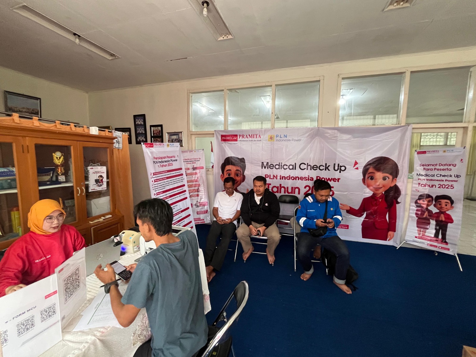 Kepahiang, 13 Agustus 2025 - Dalam rangka menyambut Hari Ulang Tahun ke-80 Kemerdekaan Republik  Indonesia Serta menjaga pasokan listrik tetap handal, PT PLN Indonesia Power Unit Bisnis Pembangkitan Bengkulu bekerja sama dengan Laboratorium Klinik Pramita menggelar kegiatan Medical Check Up (MCU) bagi 58 pegawai. Pemeriksaan ini dilaksanakan pada tanggal 11, 12, dan 13 Agustus 2025 di Kantor PLN Indonesia Power UBP Bengkulu.