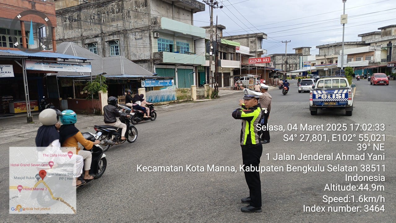 Bengkulu Selatan - Polres Bengkulu Selatan melalui Satuan Lalu Lintas (Satlantas) menggelar patroli dan pengaturan arus lalu lintas di beberapa lokasi di wilayah Kabupaten Bengkulu Selatan, pada Selasa, 4 Maret 2025.