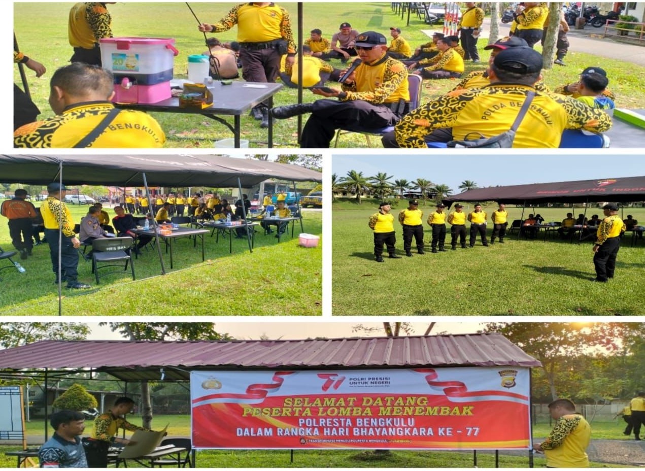 Disampaikan Waka Polresta Bengkulu AKBP Max Marianes, S.I.K, kegiatan Lomba menembak dilaksanakan oleh Polresta Bengkulu dalam rangka memperingati Hari Bhayangkara yang ke-77 dan di ikuti oleh 35 personel Polresta Bengkulu.