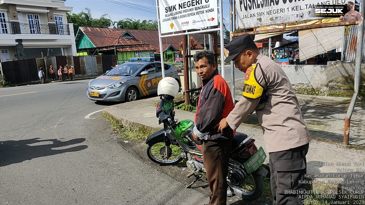 Rejang Lebong,Dutawarta.com - Polsek Curup Polres Rejang Lebong Polda Bengkulu kembali menggelar razia Senjata Tajam (Sajam) dan Senjata Api (Senpi), Sabtu (14/1/2023) siang. Kegiatan razia digelar di jalan ini dengan sasaran warga yang melintas.