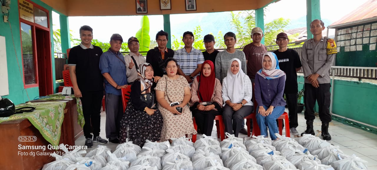 Lebong - Polsek Lebong Utara Polres Lebong Polda Bengkulu melalui Bhabinkamtibmas Briptu Cindra Sugara, menyalurkan bantuan Sembako kepada warga yang terdampak banjir di Desa Kampung Muara Aman, Rabu (29/3/2023) siang.