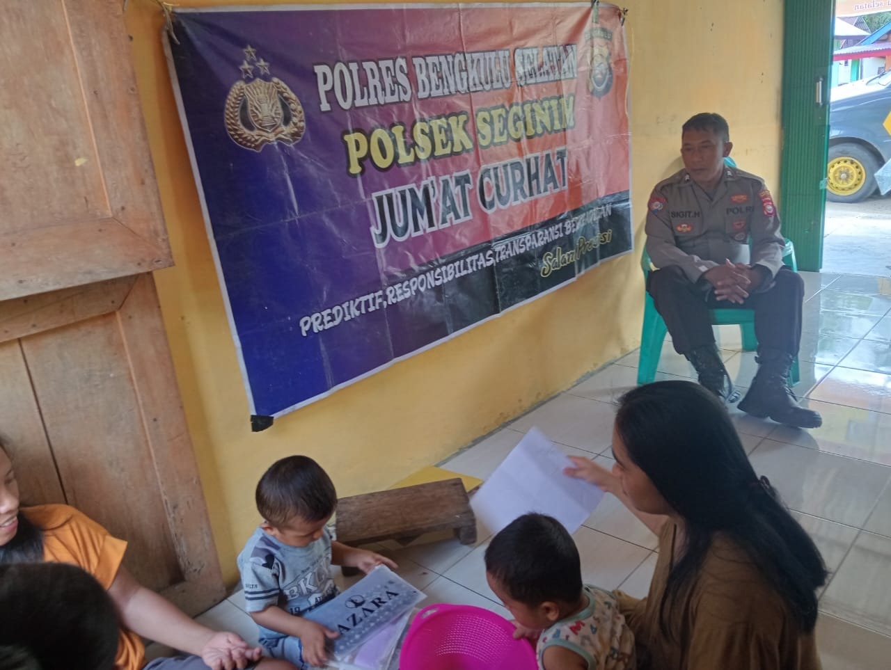 Kapolsek Seginim, Iptu Priyanto, S.H., menjelaskan bahwa kegiatan Jumat Curhat menjadi upaya pembinaan kemitraan antara Polri dan masyarakat. Melalui interaksi langsung ini, Polri dapat mendengarkan saran, kritik, dan aduan warga demi peningkatan pelayanan kepolisian.