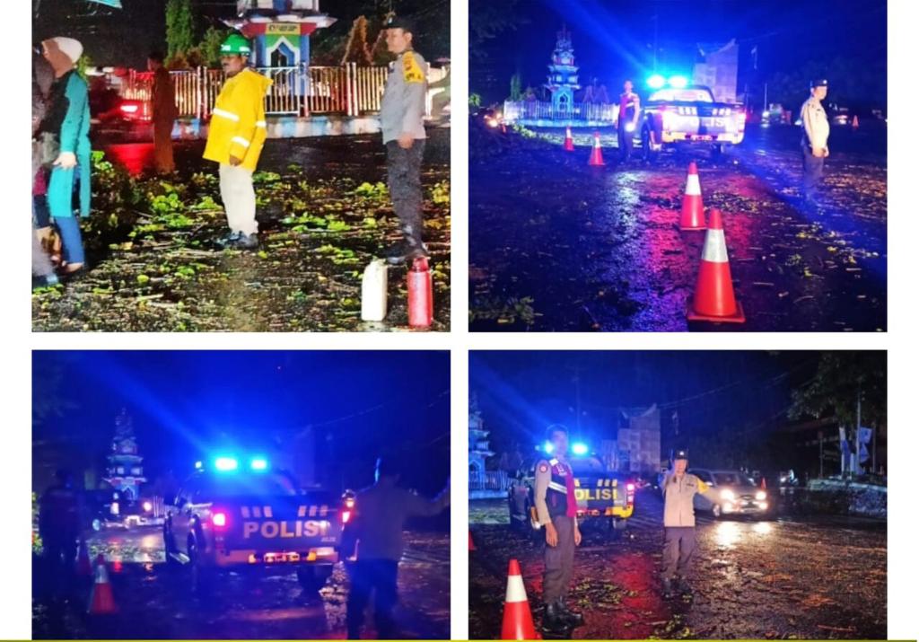 Bengkulu - Setelah terjadinya angin kencang yang melanda Kota Bengkulu dan sekitarnya pada Senin Sore (08/05/2023) yang mengakibatkan pohon tumbang di ruas jalan, Sat Samapta Polresta Bengkulu Polda Bengkulu melakukan Patroli dan mendatangi TKP pohon tumbang di Jalan Basuki Rahmat dan Jalan Danau, Senin (08/05/2023) malam.