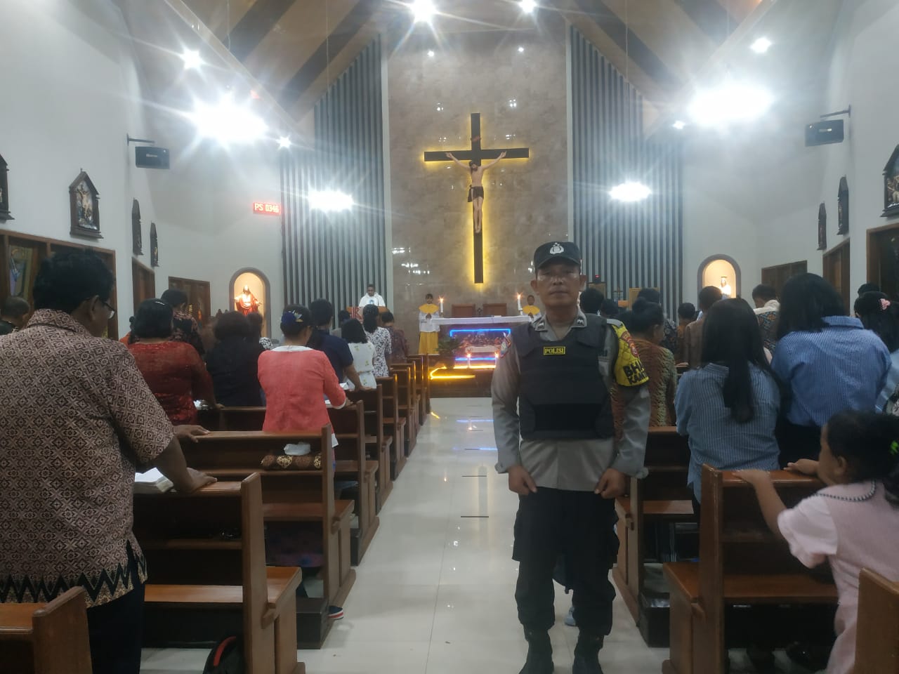 Sebagai Pelayan Masyarakat, Bhabinkamtibmas Laksanakan Pengamanan Gereja