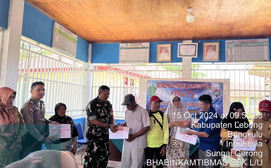 Bhabinkamtibmas Polsek Lebong Utara Hadiri Penyaluran BLT DD di Desa Sungai Gerong