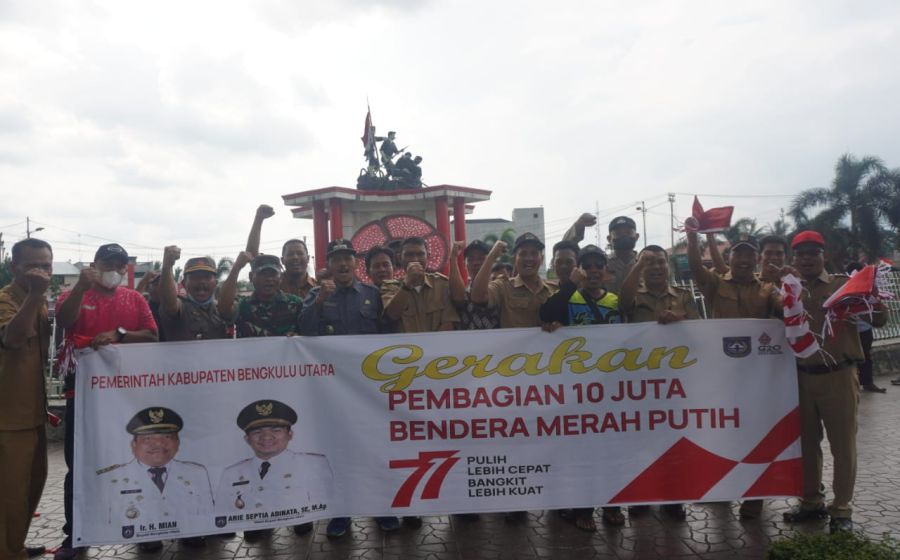 Sambut HUT RI ke-77, Gerakan 10 Juta Bendera Mulai Dipasang di Pusat Kota Arga Makmur