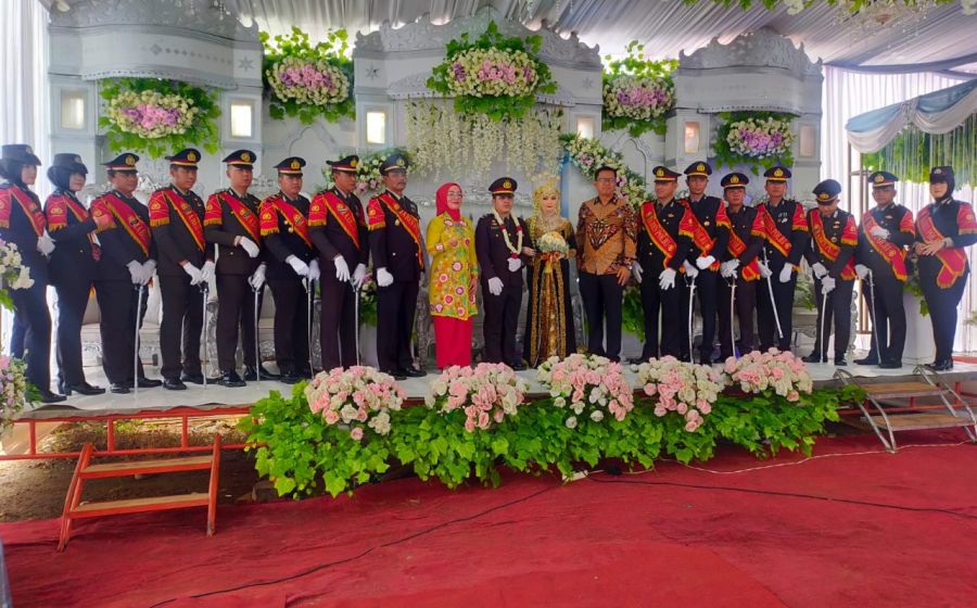 Kapolres Mukomuko Jadi Inspektur Upacara Pedang Pora Pernikahan Iptu Rizki Saputra
