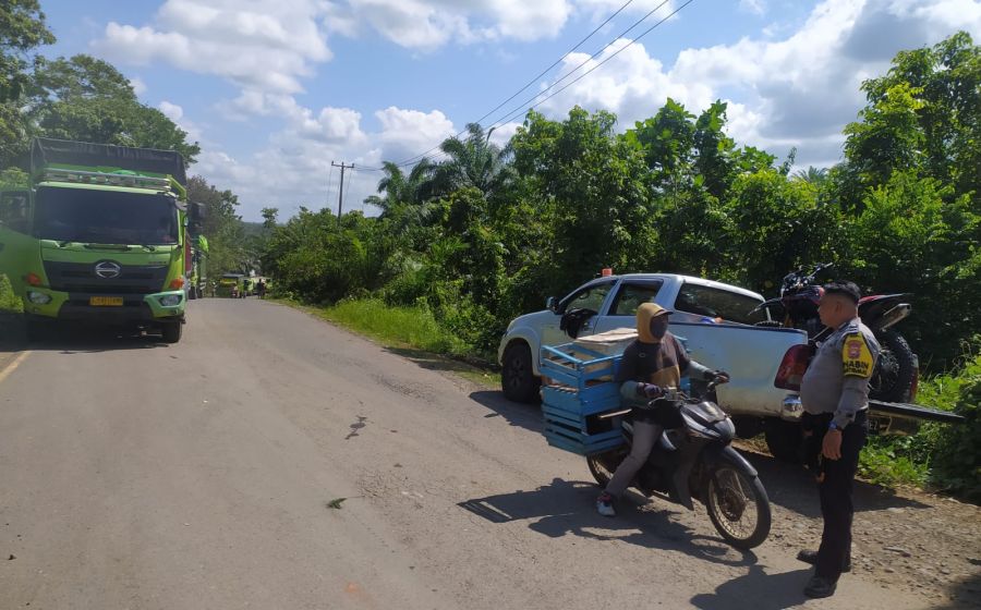 Kanit Binmas Datangi Lokasi Tronton Bermuatan Alber Nyangkut di Lintas Pesisir