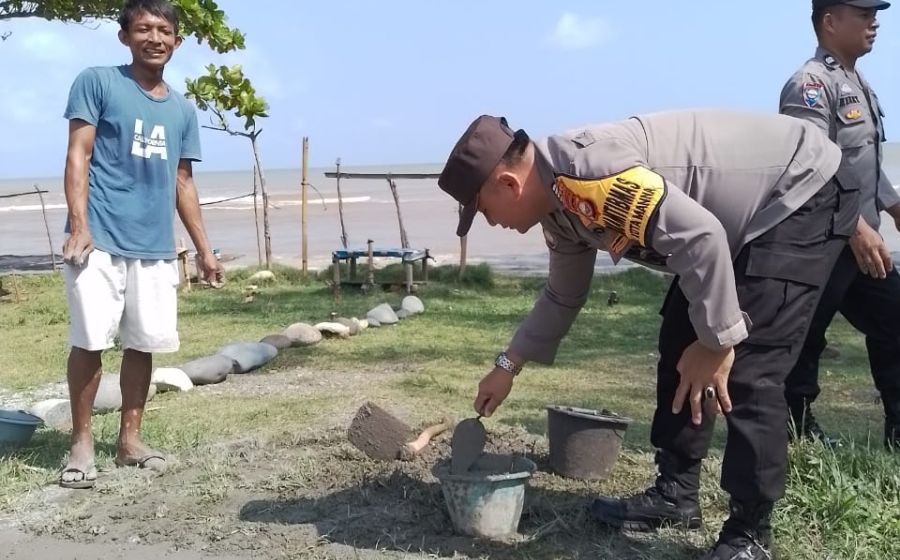 Sambang Dialogis, Bhabinkamtibmas Polsek Kota Manna Bantu Warga Perbaiki Jalan