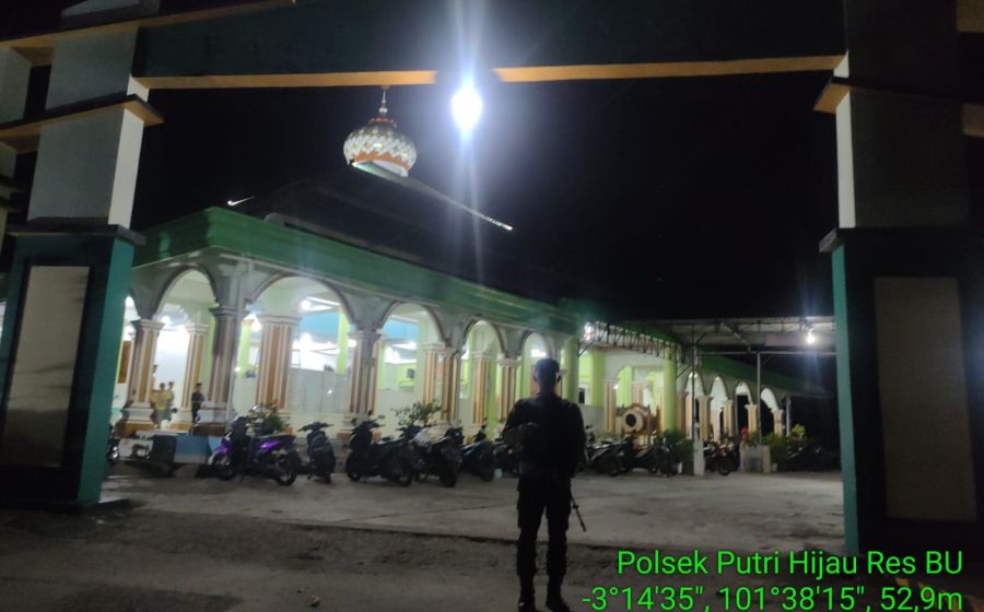 Lagi, Personel Polesek Putri Hijau Melaksanakan Pengamanan Salat Tarawih