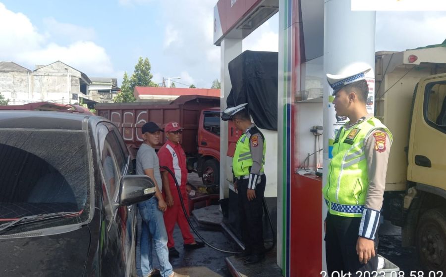Sat Lantas Polres BS, Gelar Pengatran Lalin Antrian Pendistribusian BBM, Guna Wujudkan Kamseltibcar Lantas