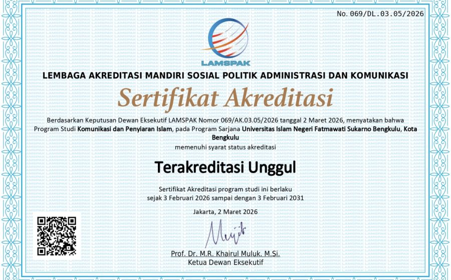 Resmi! Prodi KPI UIN Fatmawati Sukarno Bengkulu Raih Akreditasi Unggul dengan Nilai 258 Berlaku hingga 2031
