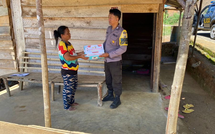 Polsek Muara Sahung Salurkan Bansos ke Warga Desa Cinta Makmur