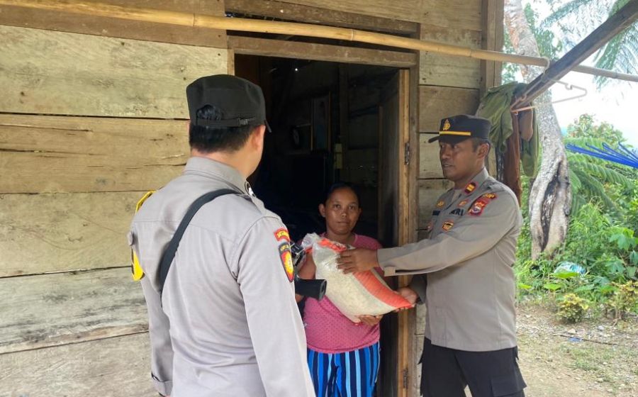 Polsek Muara Sahung Bagikan Sembako kepada Warga Kurang Mampu
