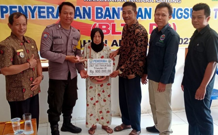 Dukung Program Desa Berjalan Lancar, Bhabinkamtibmas Polsek Muara Sahung Monitoring Pembagian BLT-DD