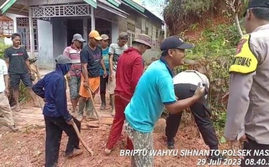 Polsek Nasal Gotong Royong Bersama Warga Desa Ulak Pandan