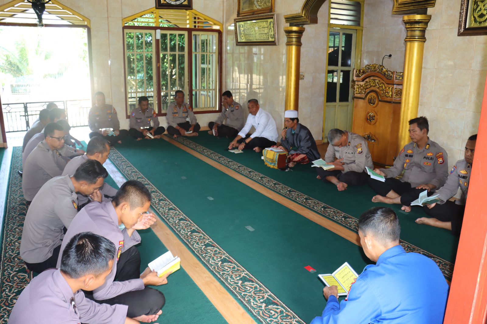 Bengkulu Selatan - Kepolisian Resor Bengkulu Selatan Polda Bengkulu, melaksanakan pembinaan rohani dan mental (Binrohtal) terhadap anggotanya yang beragama Islam dengan menggelar yasinan yang dipimpin oleh Ipda Slamet, bertempat di Masjid Sulaiman Alfarizi Polres Bengkulu Selatan, Kamis (22/6/23).