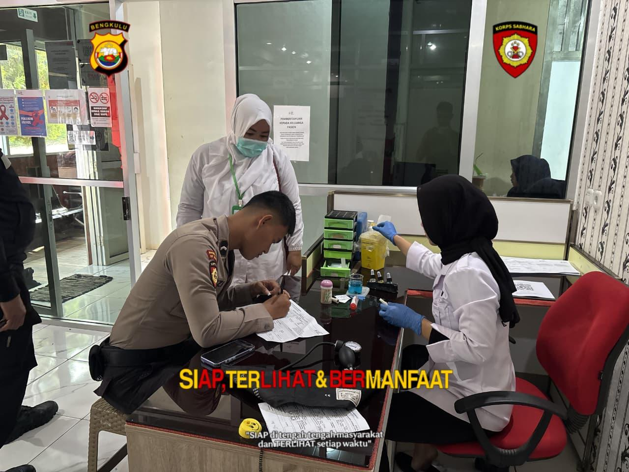 Personel Direktorat Samapta Polda Bengkulu secara sukarela mendonorkan darahnya