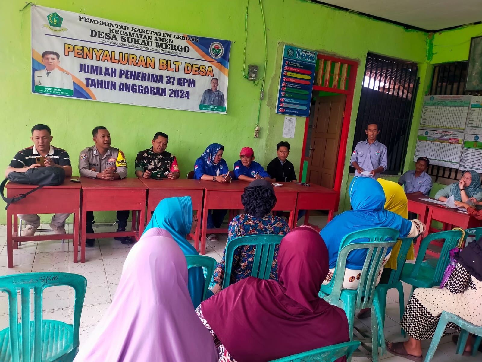 Lebong - Bhabinkamtibmas Polsek Lebong Utara Polres Lebong Polda Bengkulu, Bripka Dedi, menghadiri penyaluran BLT DD di Desa Sukau Mergo Kecamatan Amen Kabupaten Lebong, Selasa (10/12/2024).